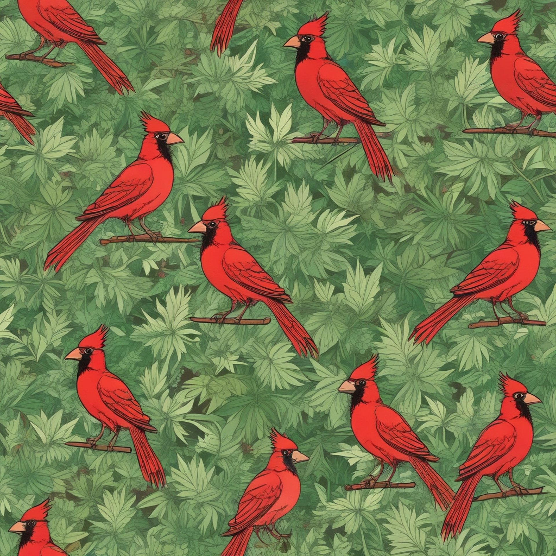 Where red cardinals and cannabis plants coexist, creating a tranquil and vibrant ecosystem.